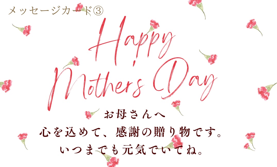 ③ お母さんへ。心を込めて、感謝の贈り物です。いつまでも元気でいてね。